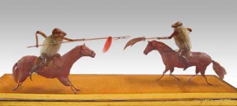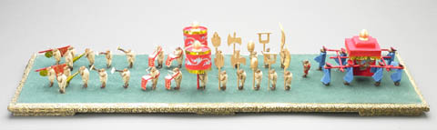 毛猴是用附有黄毛的辛夷(玉兰花的骨朵)作身子,用蝉蜕(tuì)的前、后腿作四肢,蝉蜕的头作头,再用胶粘合制作成。它不是一种毛绒玩具,用单个毛猴可以做出各种形象逼真、栩栩如生的造型,如拉洋车的、卖豆汁儿的、剃头的、耍把式的等等。当时在庙会摊上和东安市场、劝业场的玩具店里都有毛猴出售。