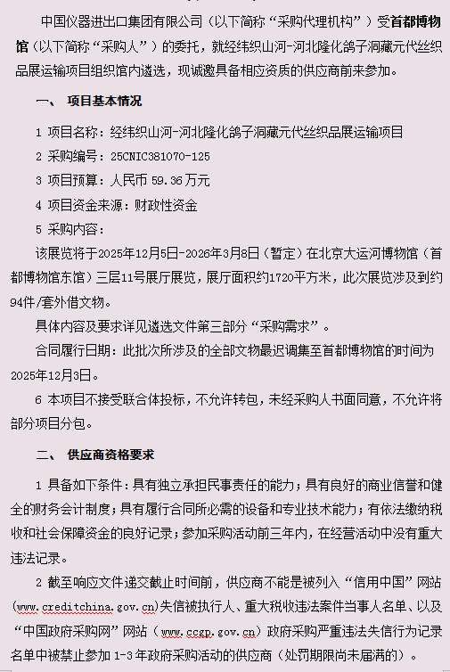 经纬织山河-河北隆化鸽子洞藏元代丝织品展运输项目公开遴选公告