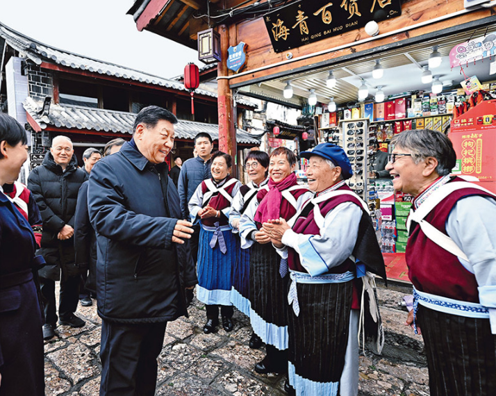 2025年3月19日至20日,中共中央总书记、国家主席、中央军委主席习近平在云南考察。这是19日下午,习近平在丽江古城考察时,与当地居民亲切交流。 新华社记者 燕雁/摄
