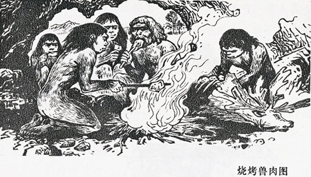 北京人开始只能吃生肉,咬起来比较费劲,还不怎么香。有一天,又是下雨,又是打雷,突然,雷电把山上的树给击着了火。人们看着大火,都害怕的不得了。火着了好几天,等火灭了以后,人们嗅到一股特别香的味道,他们感到很奇怪,就顺着香味的方向去找,他们有了一个非常重要的发现,你们猜猜,他们发现什么了。