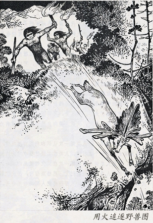 宝典爷爷:是这么回事,那时,人们还不会盖房子,只能住在一个山洞里。山洞前边不远的地方有一条河,山上到处都是树,有的树长着小球似的果实,吃起来还有香味,树林里生长着野猪、羚羊、鹿、水牛、老虎等八十多种动物。他们也不会种粮食,每天都要去捉野兽,找果子。由于没有枪,没有刀,也没有弓箭什么的,要想捉住野兽是很不容易的,只能靠大家一起干才行。用今天的话讲就是必须团结起来,依靠集体的力量,才能捉住野兽。