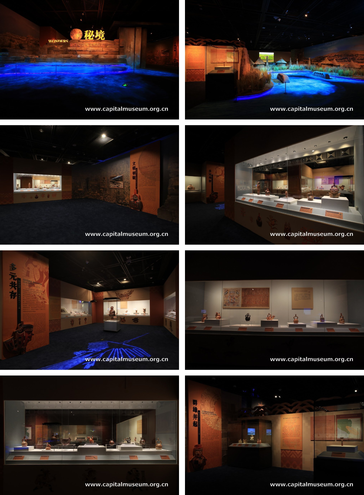 公元前200年以后,查文文化逐渐衰落,原先受查文文化影响的秘鲁许多地方,纷纷发展出了各具特色的文化。比如,在秘鲁北部和中部地区,出现了比库斯文化、加伊纳索文化和利马文化等。到了公元1世纪至5世纪,又出现了卡哈马卡和雷瓜伊等北部高地诸文化与北部沿海新兴的莫切文化并立的局面。在南部沿海地区,受查文文化影响的帕拉卡斯文化逐渐发展为纳斯卡文化。在公元6世纪初,莫切文化终于发展成为沿海地区最强势的文化,成为安第斯文明最具有代表性的文化之一。本部分主要展示了纳斯卡文化和莫切文化的艺术精品。