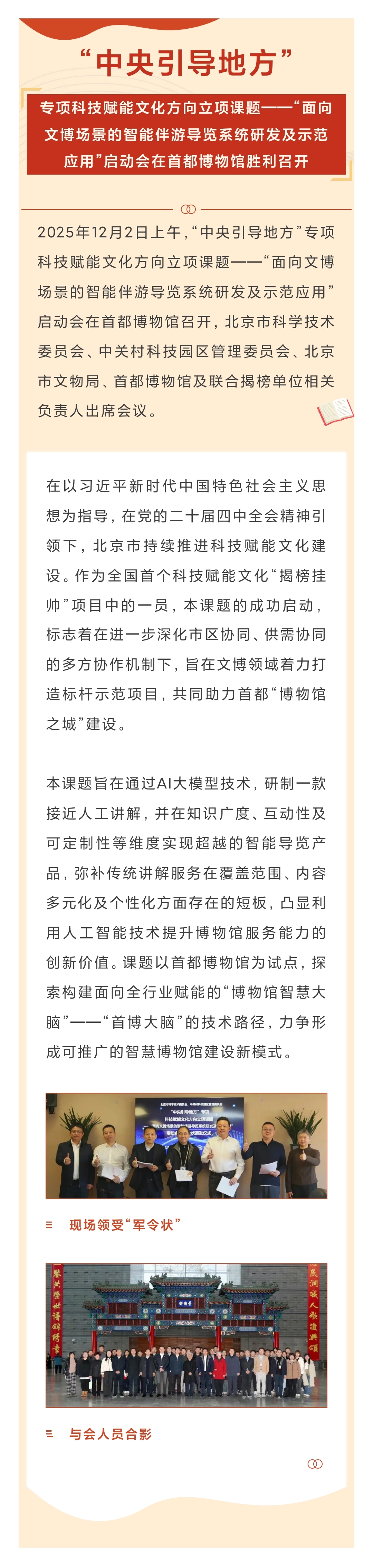 “中央引导地方”专项科技赋能文化方向立项课题启动会在首都博物馆胜利召开